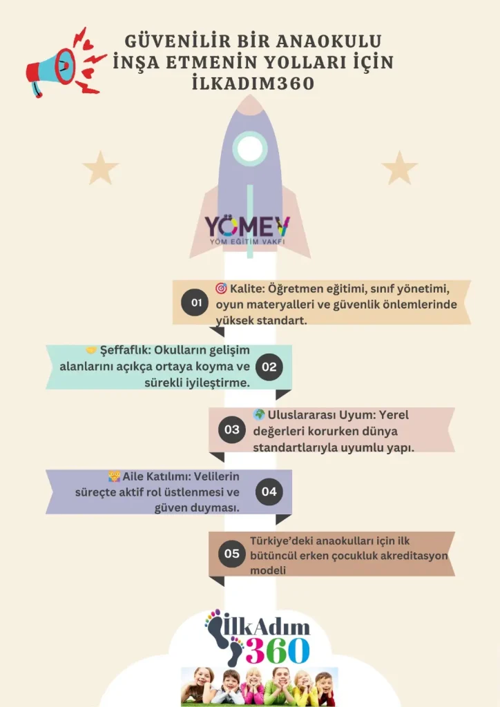İlkAdım360, YÖMEV (YÖM Eğitim Vakfı) tarafından geliştirilen, çocukların erken yaş gelişim ihtiyaçlarını bütüncül bir bakış açısıyla ele alan yenilikçi bir anaokulu programıdır.
